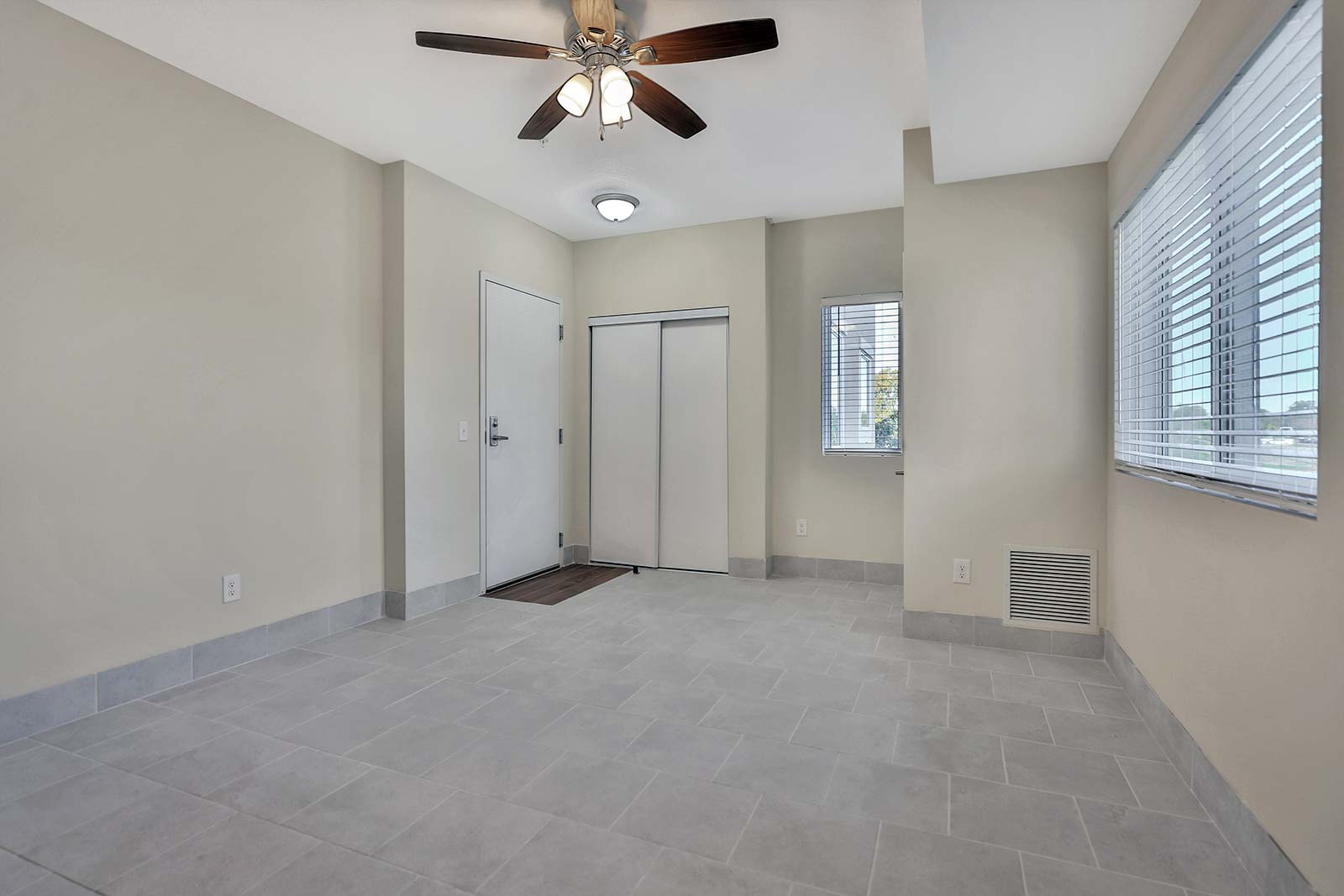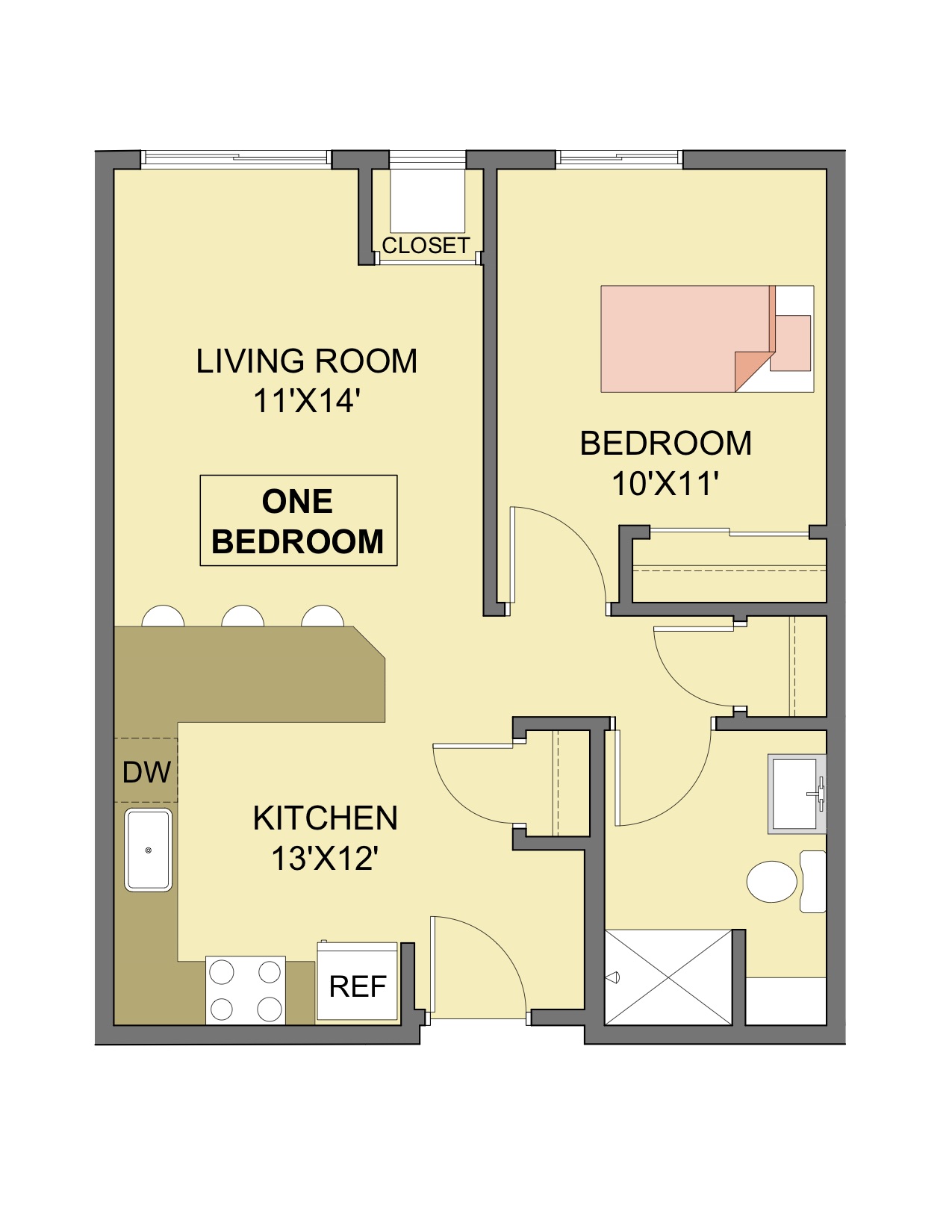 - Large one bedroom apartments with high 9 ft ceilings are designed and sized to easily accommodate 2 persons.