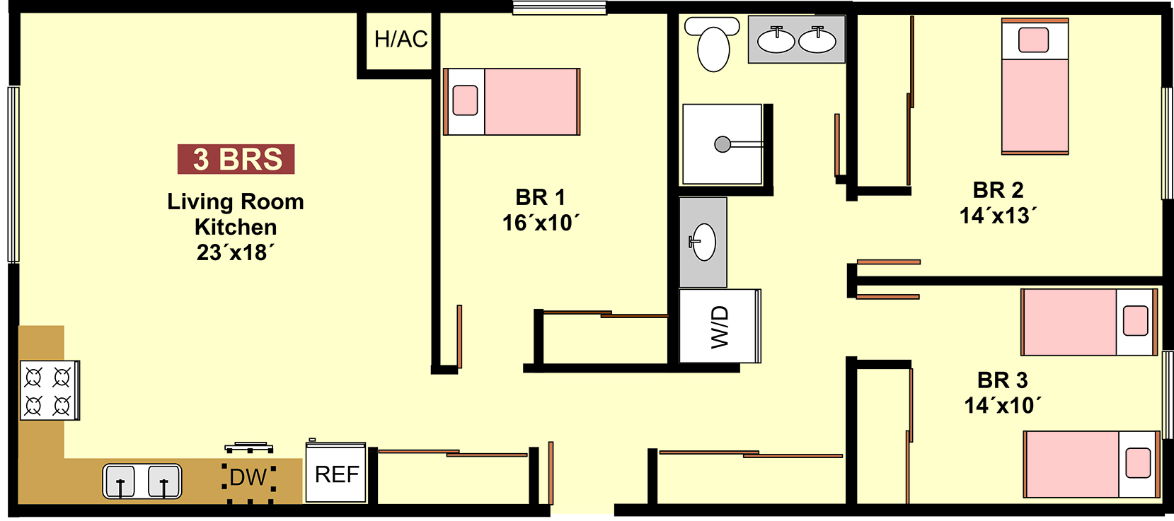 2 Bedroom: $1,750, 3 Bedroom: $2,250