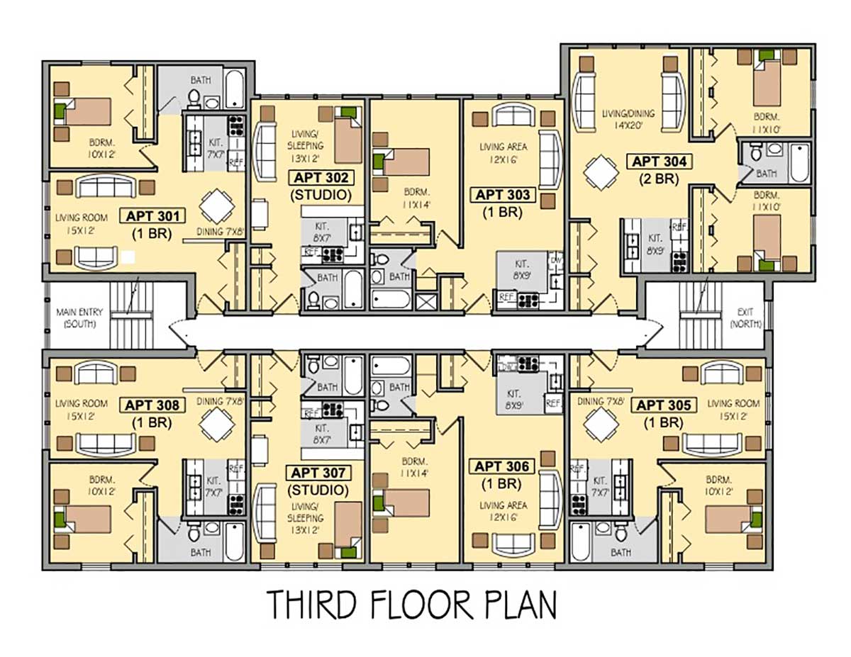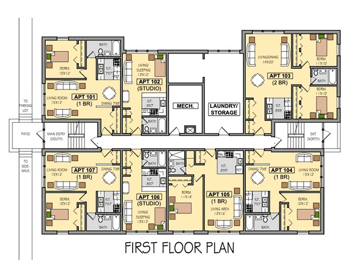 Studio: $1,100, 1 Bedroom: $1,200, 2 Bedroom: $1,500.